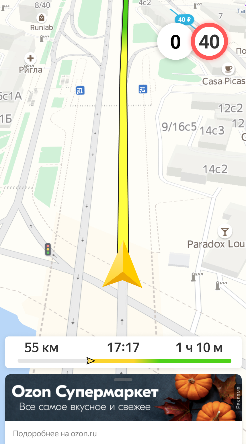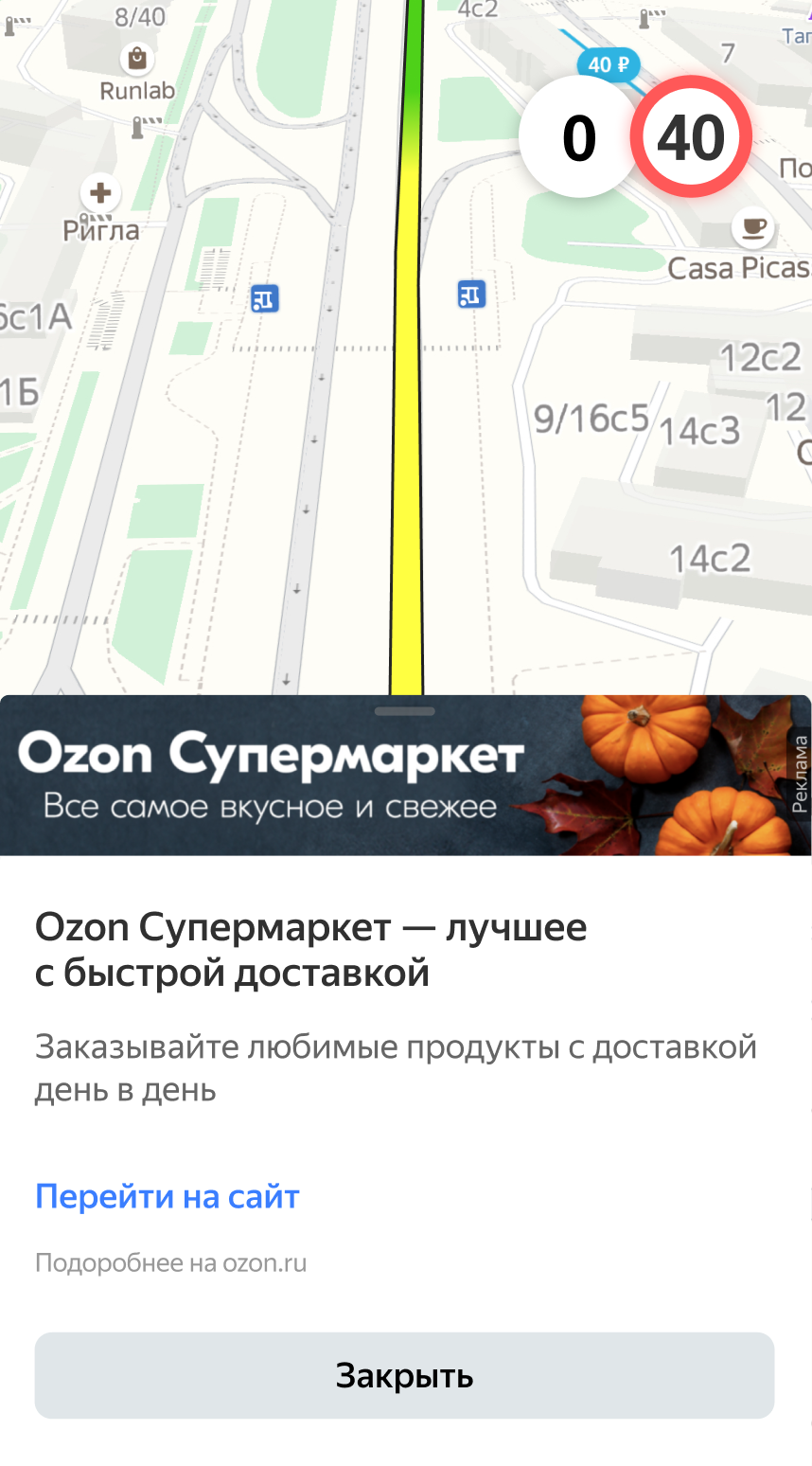 Чтобы пользователи узнавали о новых сервисах, пунктах выдачи и постаматах поблизости, команда Ozon использует возможности «Яндекс.Навигатора». Так, осенью 2019 года Ozon запустил сервис срочной доставки свежих продуктов в Москве. У жителей юго-востока города появилась возможность получать свои заказы через 40 минут после оформления, а у жителей других районов — на следующий день. Поскольку срочная доставка работала только на определенные районы, коммуникацию важно было вести точечно.
