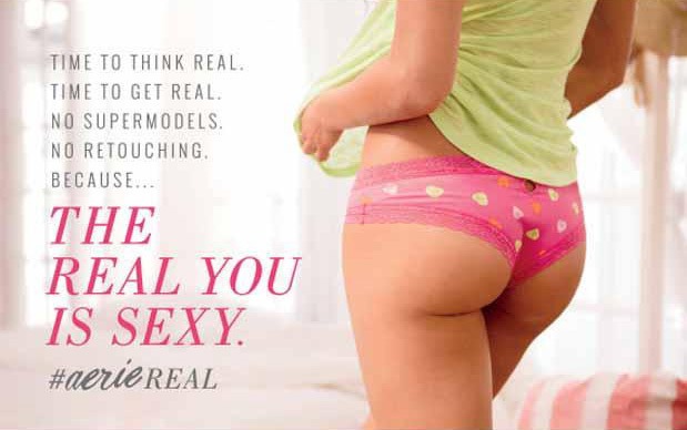 Aerie, «сестринская» компания бренда одежды American Eagle Outfitters, запустила рекламную кампанию «Real You» для продвиения весенней коллекции нижнего белья. Отличительной особенность проекта является тот факт, что креаторы не использовали фоторедакторы для ретуширования далеких от фэшн-стандартов фигур моделей.