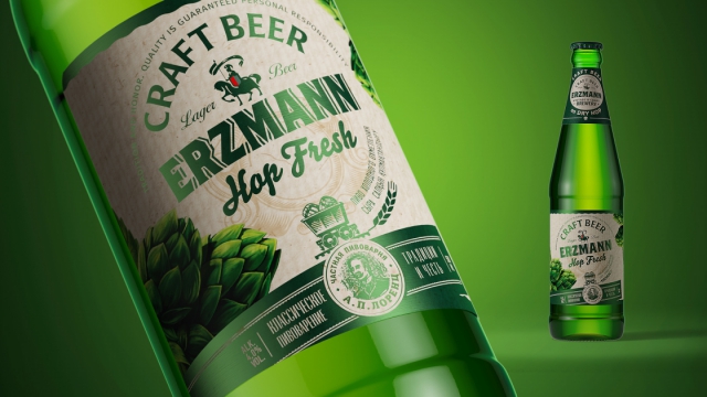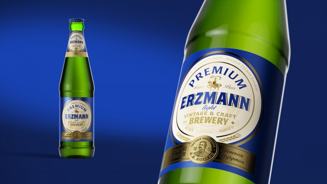 Работа в том числе велась над визуальным решением для серии пива ERZMANN (темное, lager, Hop Fresh, Strong). Дизайн этикеток выполнен в традиционной европейской манере.