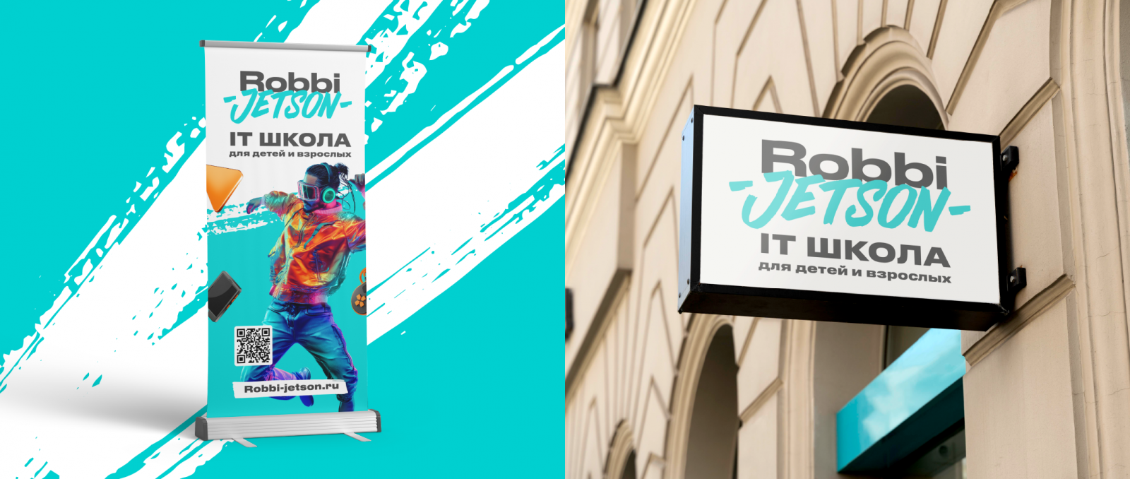 В первую очередь агентством «Март» были разработаны новое наименование школы — Robbi Jetson — и одноименный бренд-персонаж. В нейминге школы заложены аллюзии на технологии, роботов и цифровую среду.