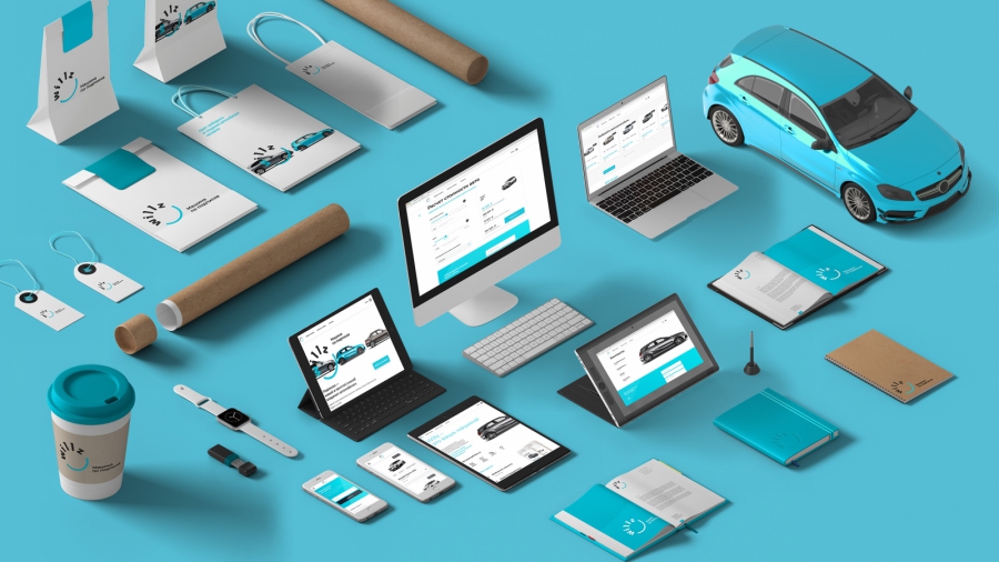 Поэтому мы постарались сделать его лёгким и незамысловатым, без излишеств. На разных носителях логотип обыгрывает автомобильную атрибутику — колесо, тахометр, руль.
