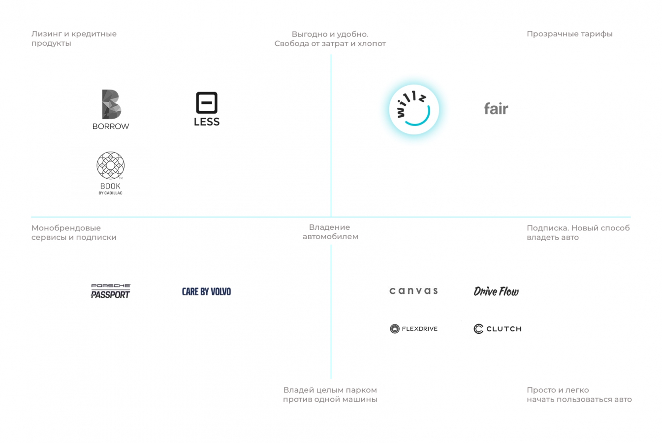 Сервисы долгосрочной онлайн-аренды автомобилей широко распространены в Америке. У таких брендов, как Porsche и Volvo, есть подобные приложения, но они автоматически ограничивают доступный модельный ряд. Россия только созрела для такой услуги, и вывод Willz стал первым в стране.