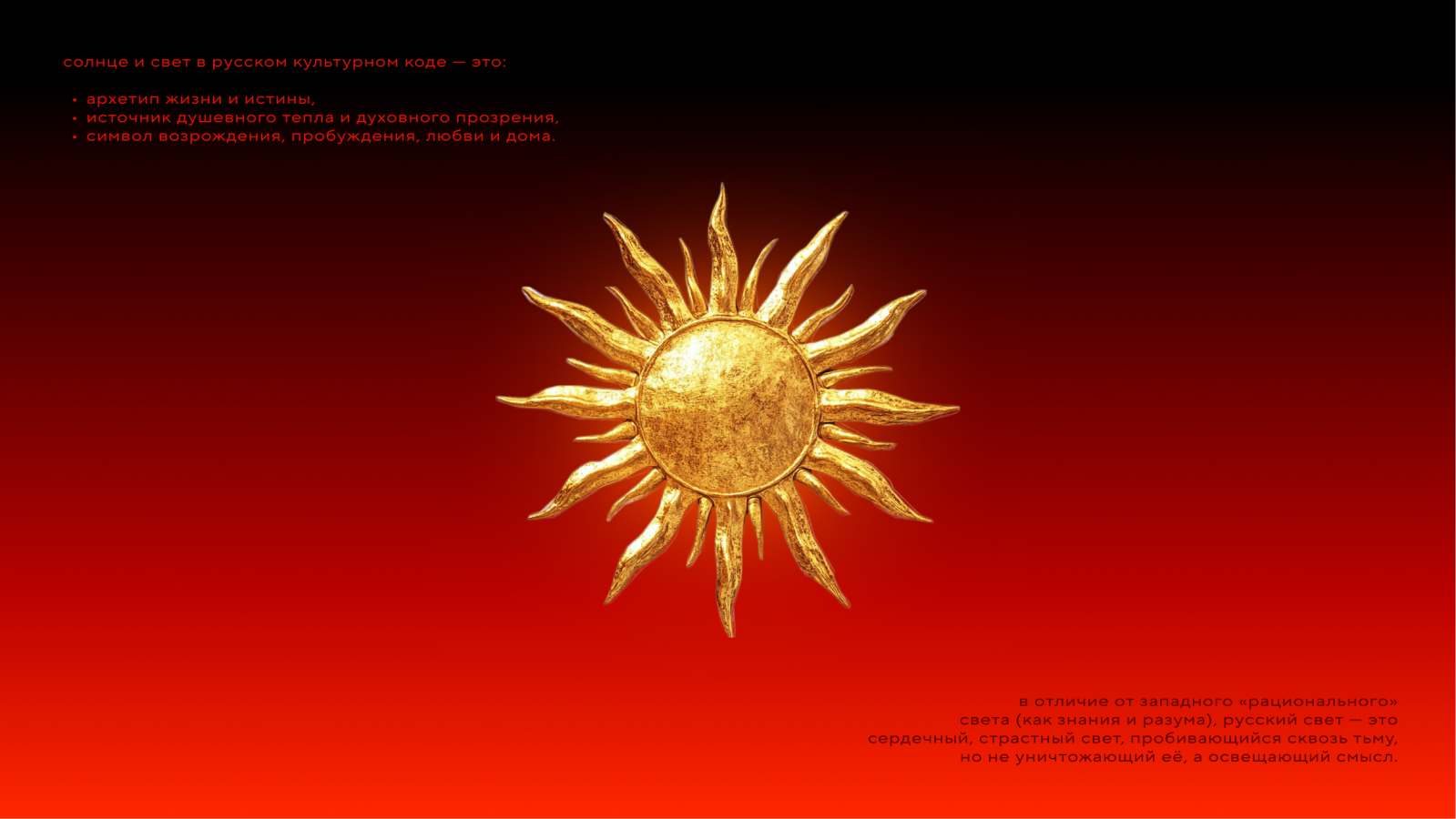 В поисках идентичности команда изучала русскую культуру (фольклор, письменность, узоры, орнаменты, наряды, многотравье, обряды, традиции) и пришла к выводу, что русский код — это не что-то одно, это все вместе. Что-то, перетекающее из одного в другое: из фольклора в узоры, из узоров в письменность