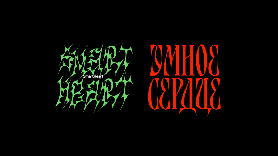 Следующий элемент нового фирменного стиля был найден в письменности. Основную эмблему — одну из версий логотипа «Умного сердца» — создали путем переосмысления и осовременивания славянской письменности. В эмблеме есть отсылка не только к культурным визуальным глифам, но и метафора леса, стволов березовой рощи, сквозь которые человек блуждает в поисках себя.