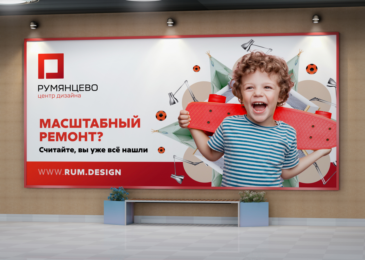 Про центр дизайна знают многие, но перед нами стояла задача донести до аудитории информацию о том, что здесь можно найти абсолютно всё для ремонта и дизайна. У нас удобная инфраструктура, широкий ассортимент товаров, и есть дизайнеры, которые на месте помогают с выбором. Поэтому предложенная концепция максимально решает нашу задачу.
