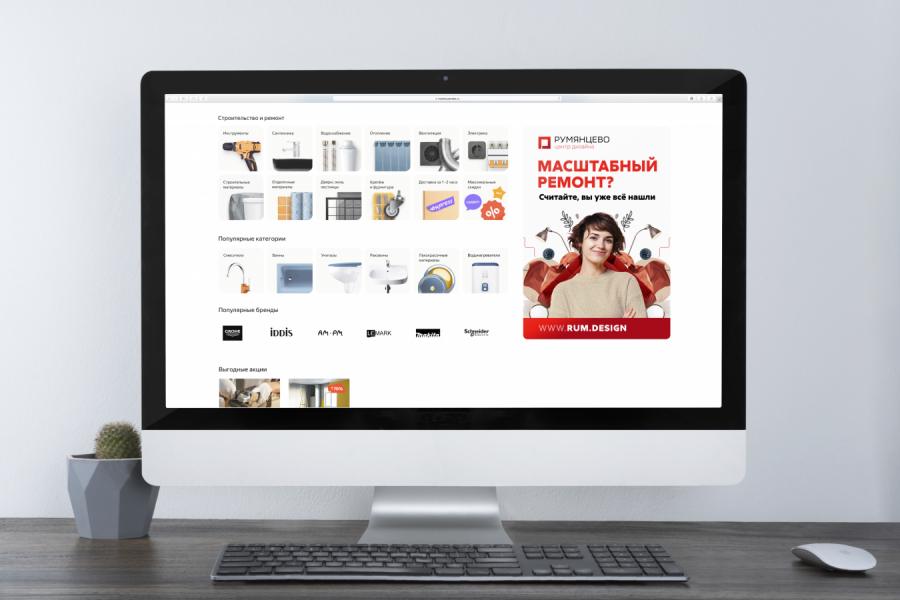 В кейвижуале мы использовали позитивные образы людей, представителей целевой аудитории, за которыми разворачивается калейдоскоп из предметов для ремонта и декора. Статичные макеты наша команда адаптировала под диджитал-анимированный формат для усиления основной идеи.