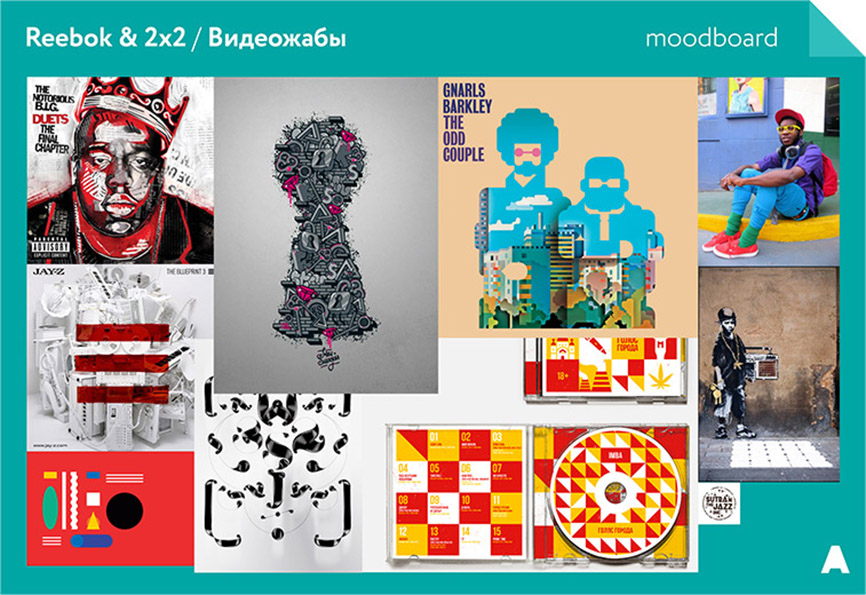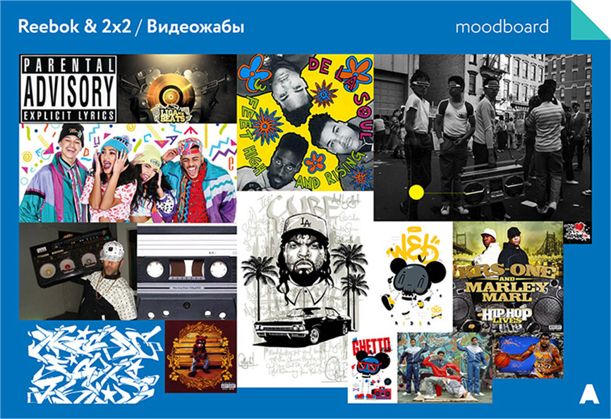 Разработка страницы началась с составления мудбордов. Так как пик популярности Reebok Pump пришелся на 90-е годы прошлого века, страницу было решено оформить в лучших традициях уличной субкультуры того времени.