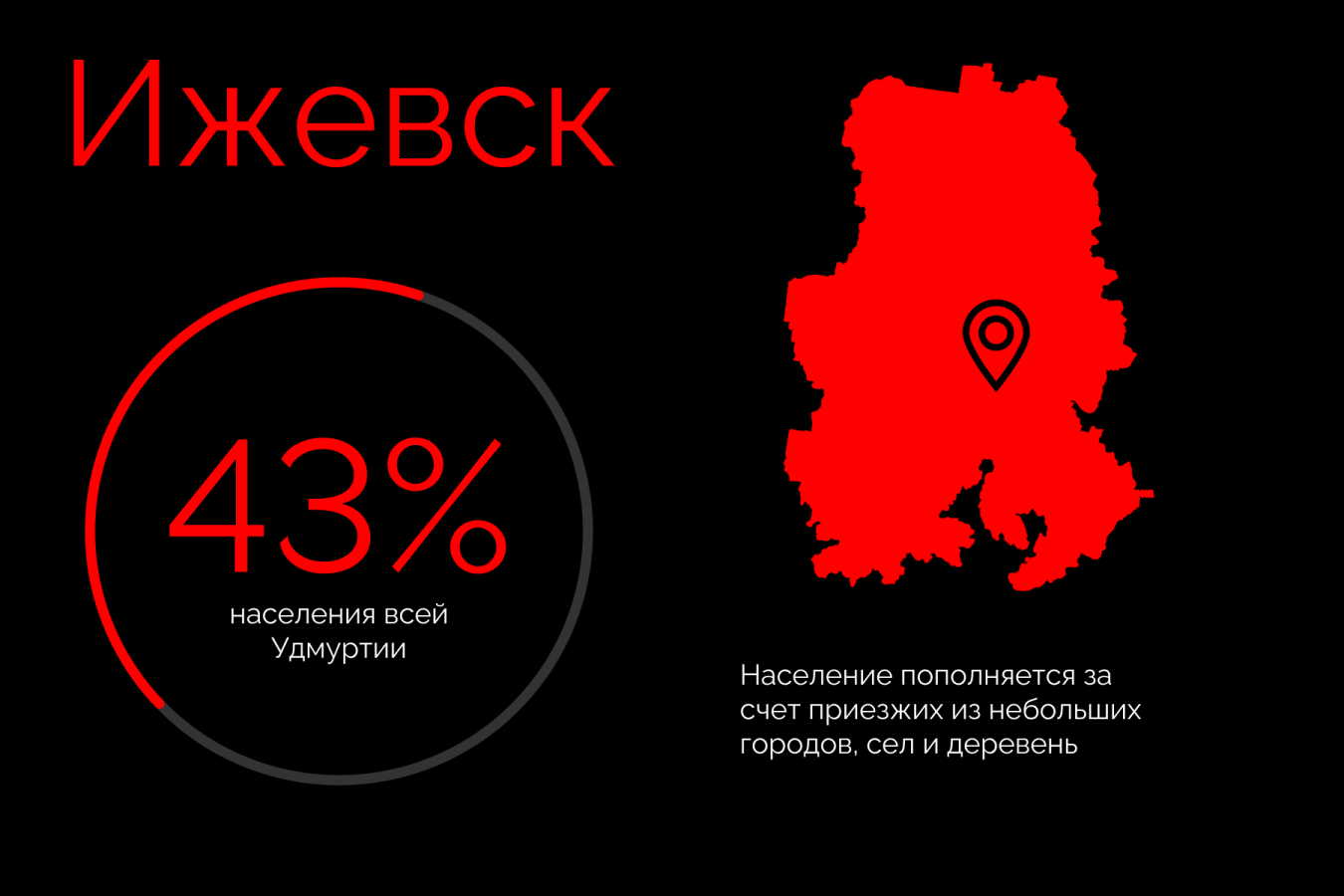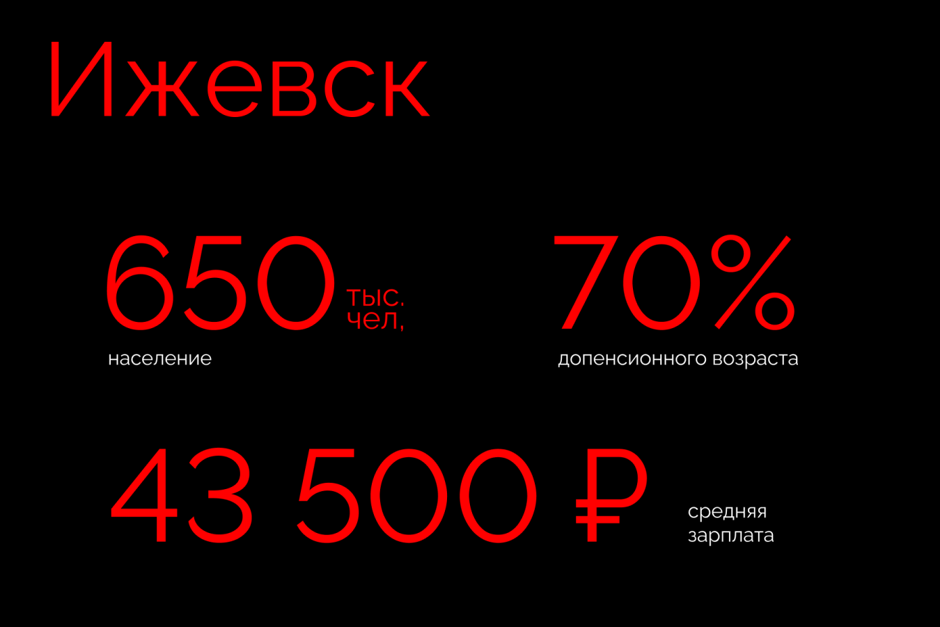 - Население Ижевска — почти 650 тыс. человек. Из них примерно 70% людей допенсионного возраста.
