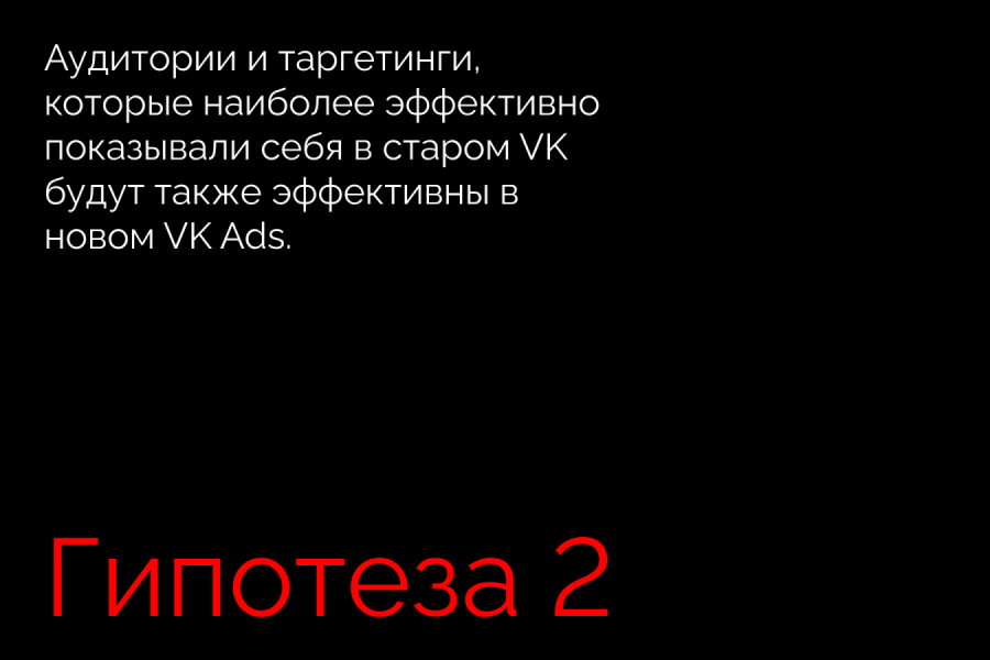 Гипотеза № 2. Аудитории и таргетинги, которые наиболее эффективно показывали себя в старом VK, будут также эффективны в новом VK Ads.