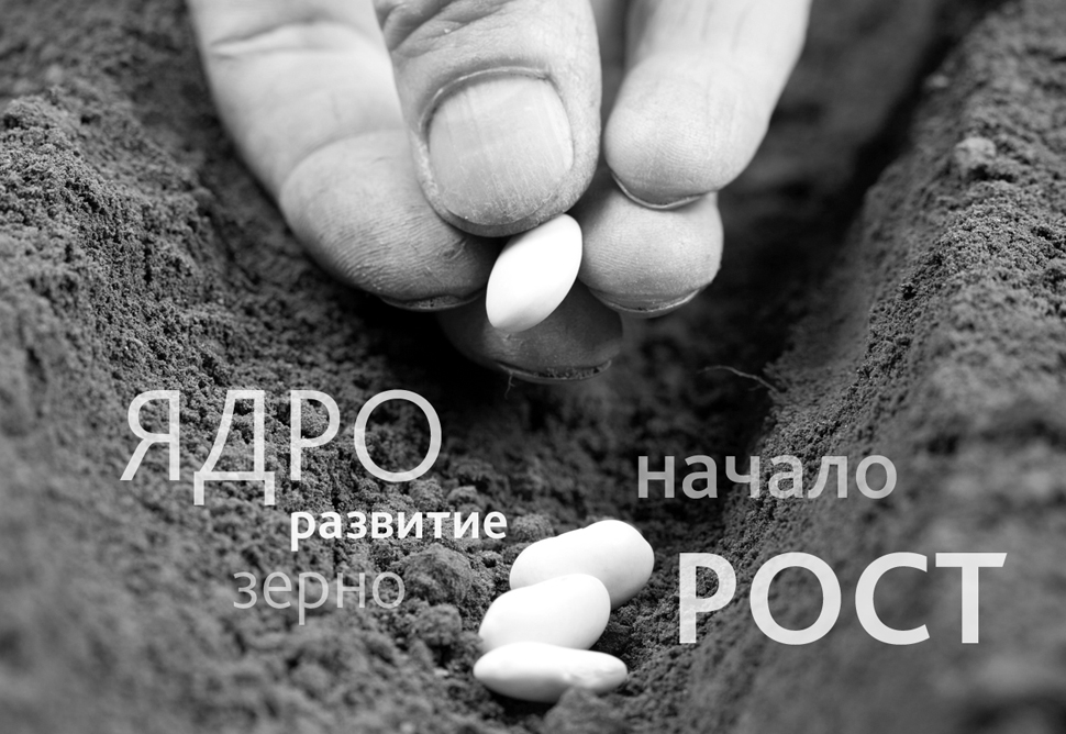 В агентстве предложили использовать простые формы, понятные образы и сочные цвета. Разработка проекта заняла полгода. Основная визуальная концепция - образ зерна, символизирующего начало, ядро. В переносном смысле зерно означает рост, развитие, по аналогии с тем, как из маленького зерна вырастает растение.