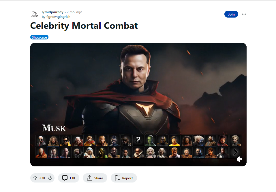 Вместо замены дизайнеров Midjourney генерирует Илона Маска в Mortal Kombat