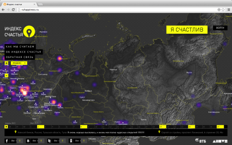 Новый проект ВТБ «Индекс счастья», разработанный совместно с digital-агентством Ailove, создан для того, чтобы перевернуть в сознании людей представление о своей стране как недостаточно приятном месте. Он представляет собой интерактивную карту, на которой показывается уровень счастья каждого региона России.