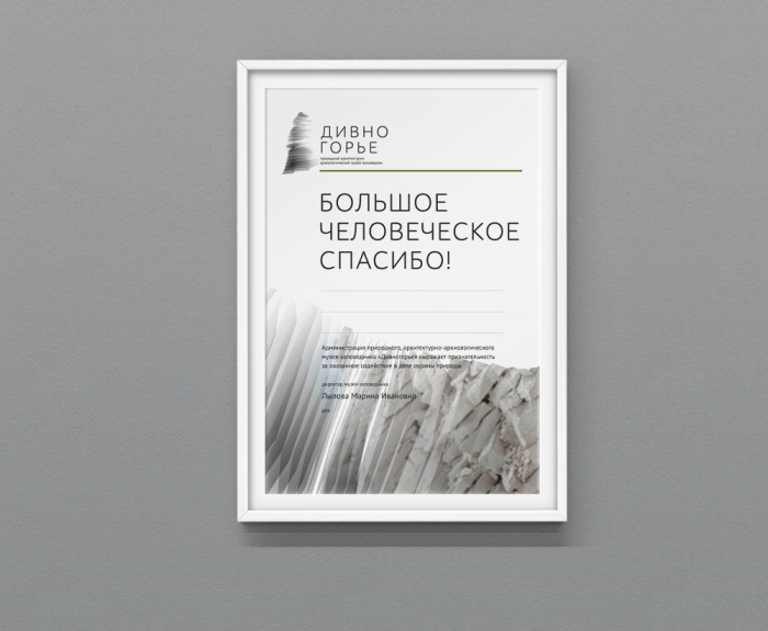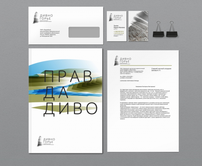 Для «Дивногорья» агентство разработало несколько вариантов фирменного стиля, как классических, традиционных, так и более современных, ориентированных на молодую аудиторию, - все они были вынесены на открытое обсуждение и голосование в соцсетях по инициативе руководства. Общественность выбрала наиболее яркий и современный из них, который являет радикально новый образ «Дивногорья». В нем нет очевидной литеры «Д», он сложен, многогранен, но при этом минималистичен.