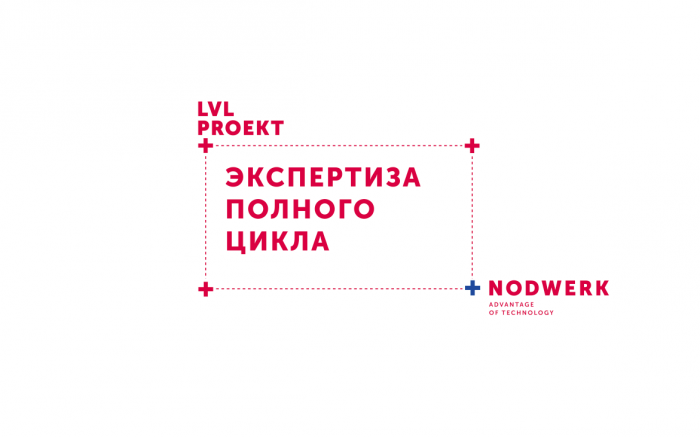 Бюро LVL PROEKT+ входит в группу компаний +Nodwerk, и вместе с другими компаниями осуществляют весь цикл строительства от проектирования до монтажа. Это второй объект в рамках экосистемы бренда +Nodwerk, над которым работает агентство Shishki.