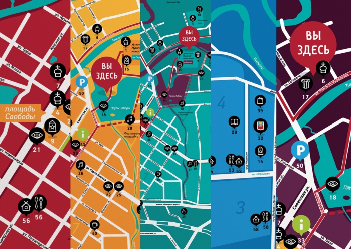 Дизайнеры сообщили, что представленная айдентика активно внедряется в городскую среду: на улицах появились карты-путеводители и уличные указатели для гостей города. В дальнейшем фирменный стиль будет применяться на разных уровнях, начиная с деловой документации административных институтов и заканчивая брендированием местной продукции на городских ярмарках.