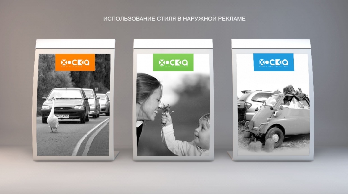 По словам авторов проекта, короткое, емкое, чистое и современное название «ХОСКА» вызывает хорошие ассоциации и легко запоминается. Также команда создала логотип, состоящий из цветных геометрических фигур и «контрастную» айдентику.