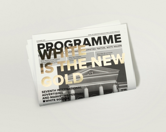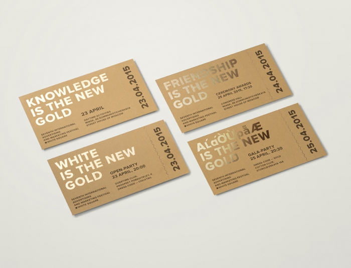 Перед командой агентства встала задача отразить в айдентике и рекламных сообщениях фестиваля ценность таких простых вещей как дружба, общение, новые знания и опыт. Для этого была использована метафора «золота». «Золотые» призывы, включая генеральный слоган фестиваля WHITE IS THE NEW GOLD сообщают о настоящих ценностях фестиваля», - объяснили авторы.