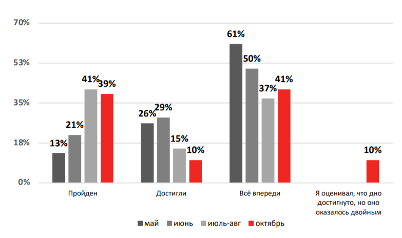 При этом около половины респондентов считают, что пик негативного влияния пандемии на индустрию еще не достигнут. Лишь 10% опрошенных полагают, что именно сейчас мы столкнулись с максимумом негативного влияния эпидемиологической ситуации на рынок.