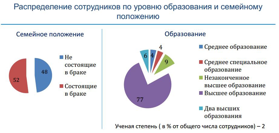 Средний стаж сотрудников в агентствах составляет около 5 лет. Ротация кадров находится на уровне 16%. Базовое владение иностранными языками показывают около 50% работников, свободное — 27%.