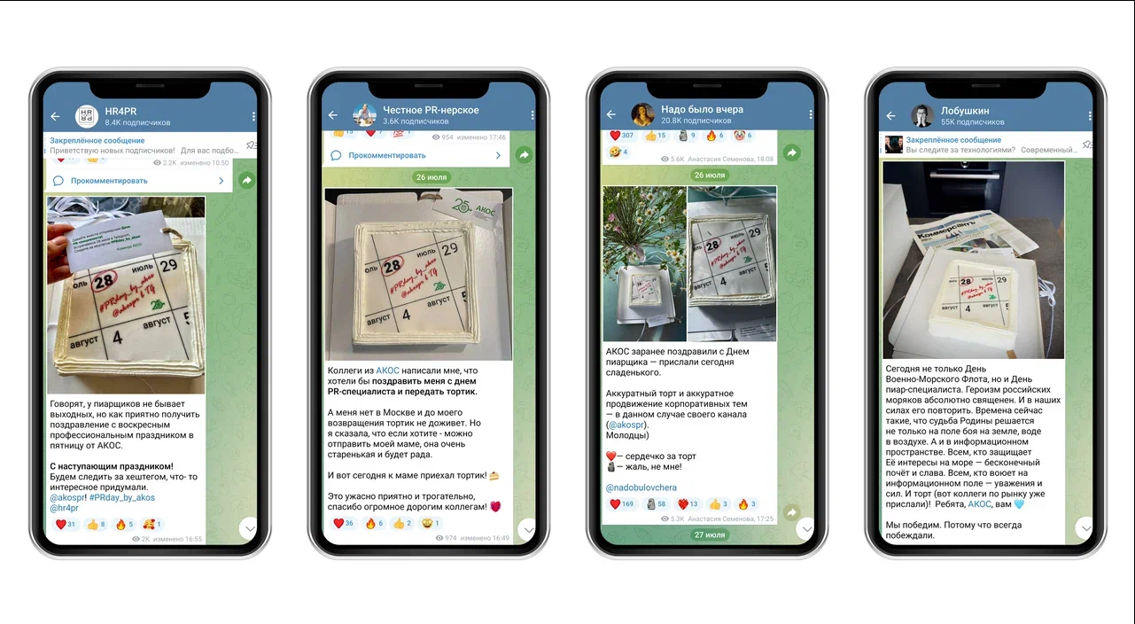 В качестве анонса Ассоциация разослала тортики с интригующим оформлением партнерам и авторам каналов. Пост в telegram-канале собрал 24,9 тысячи просмотров и 85 репостов, вызвав интерес не только у специалистов по PR, но и у представителей смежных областей.