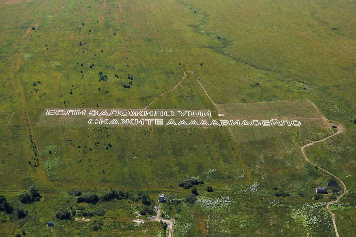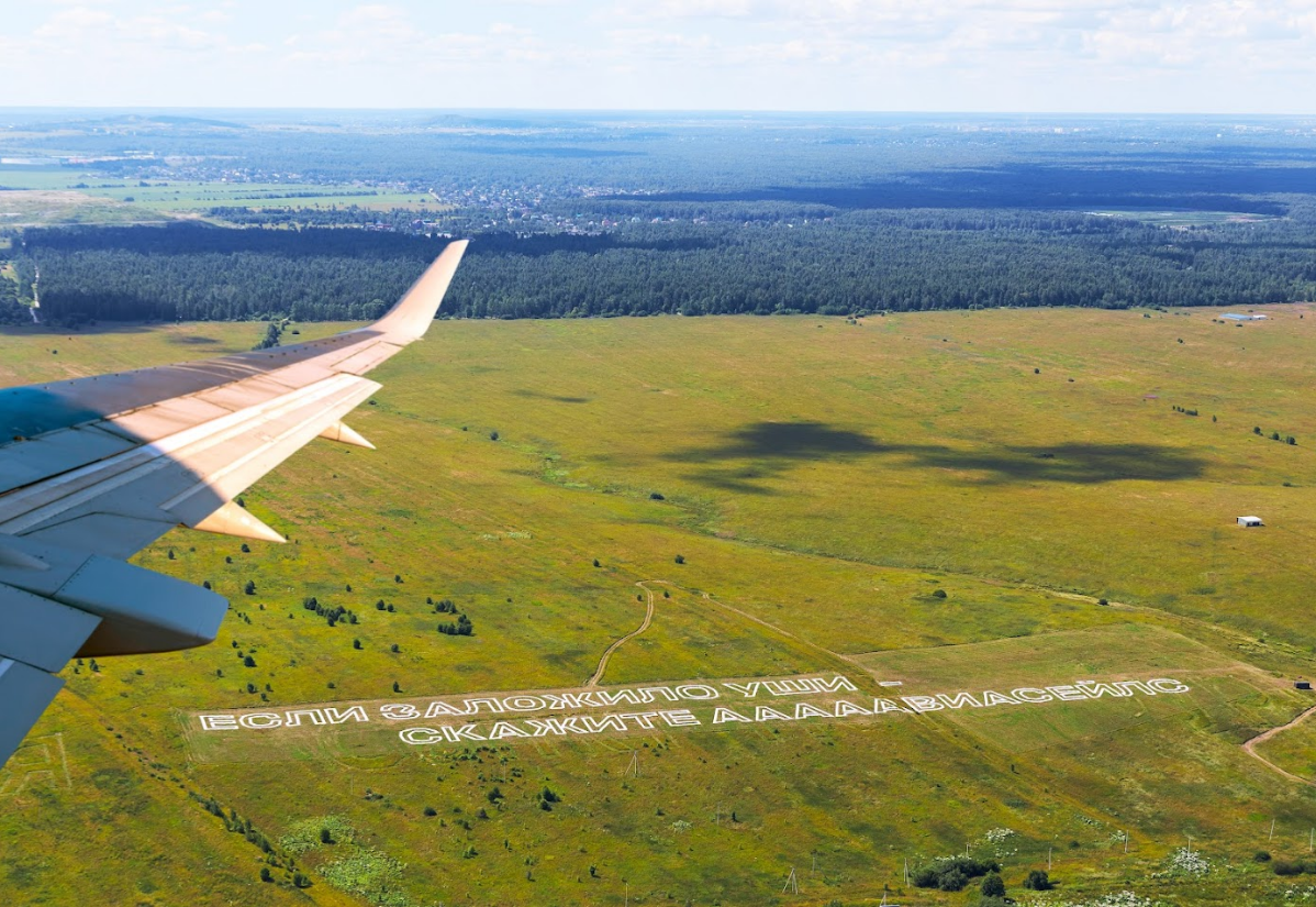 Сервис для покупки авиабилетов «Авиасейлс» снова ловит путешественников прямо во время полёта. Реклама сервиса в виде геоглифа (надписи на земле) размером 12 тысяч квадратных метров «Если заложило уши — скажите Ааааавиасейлс» появилась в поле под Санкт-Петербургом. Ее видно из иллюминатора при взлете и посадке в международном аэропорту Пулково — и в ночное время тоже.