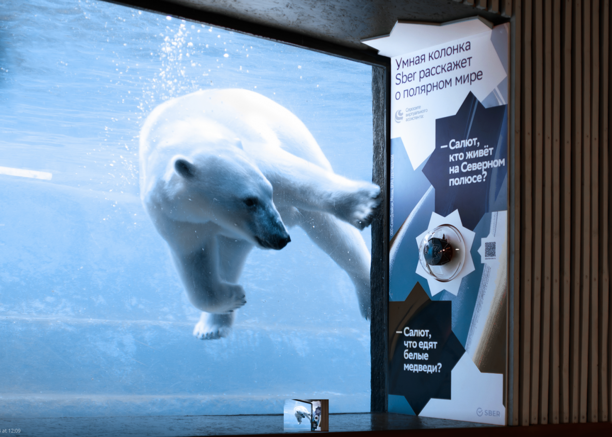 В рамках партнерства с умными устройствами Sber в нескольких закрытых вольерах — обезьяны, рептилии, птицы — и в кафе «Полярный мир» будут размещены умные колонки с виртуальным ассистентом «Салют».
