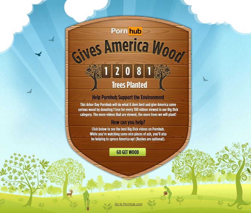 Ресурс Pornhub.com объявил «зеленую» акцию, приуроченную ко Дню посадки деревьев (Arbor Day). Сайт решил посадить одно дерево за каждые 100 просмотров видороликов в определенной категории.
