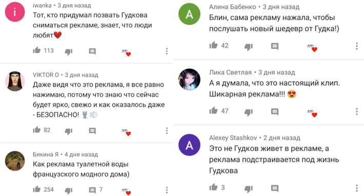 Аудитория оценила новый и неожиданный образ известного шоумена — вечно задорный и улыбчивый Саша Гудков здесь предстал в образе брутального, серьезного мужчины с щетиной на лице.