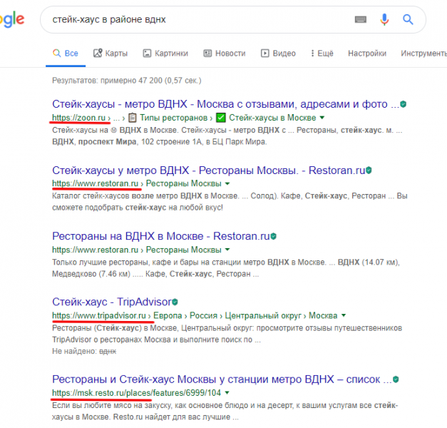 К тому же, при добавлении в каталоги (например, Zoon, otzovik, Yell, irecommend)данных о заведении, создаются обратные ссылки на сайт, что позитивно воспринимается поисковиком. Наращивание качественной ссылочной массы означает возможность быть «заметнее» конкурентов, а значит, ранжироваться выше.