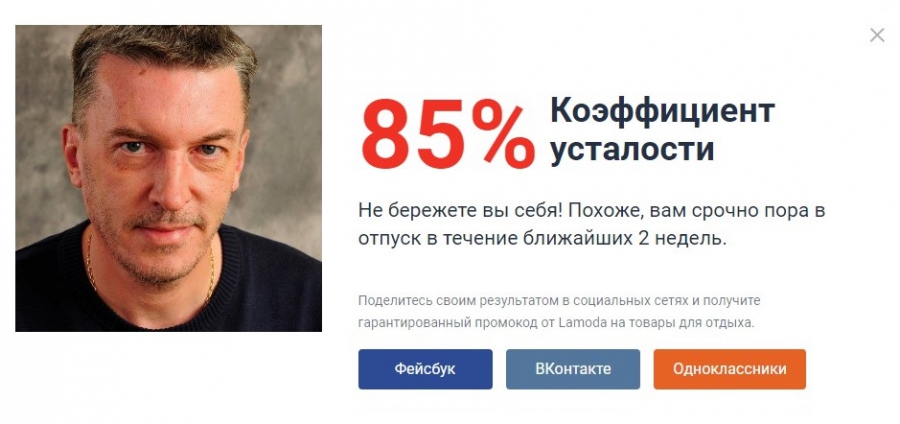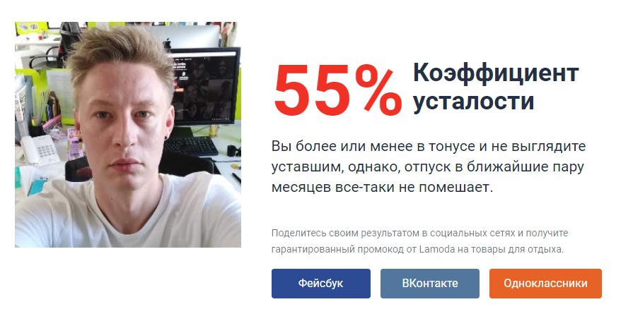Специально созданный алгоритм на базе нейронных сетей способен определить коэффициент усталости и период, необходимый для отдыха, по вашей фотографии.