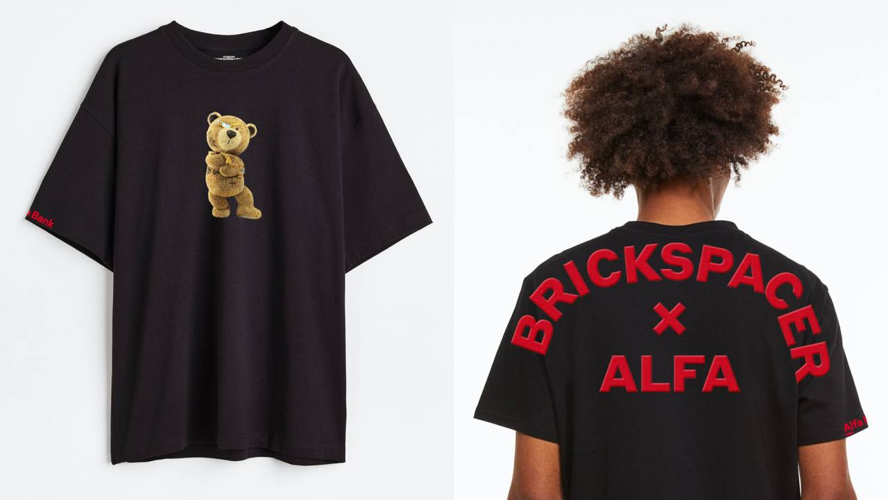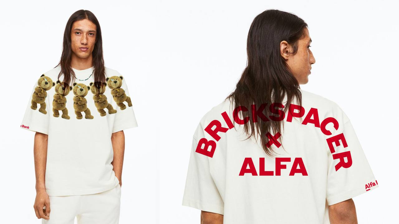 «Альфа-банк» работает над коллекцией мерча с художником Brickspacer. На фирменных вещах, плюшевых бомберах и футболках, будет размещён символ художника — мишка с золотом и повязкой.