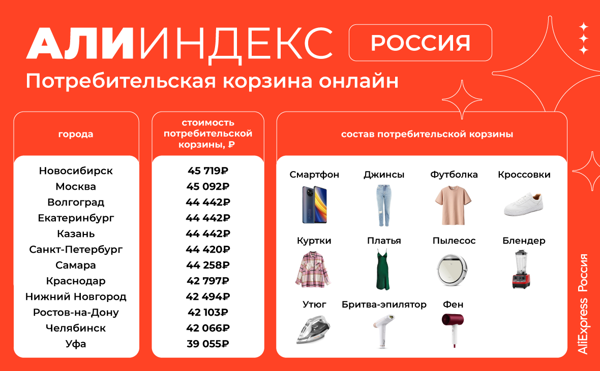 В пятерку активных регионов, помимо Москвы и Санкт-Петербурга вошли Новосибирск, Волгоград и Екатеринбург, за ними идут Казань, Краснодар, Нижний Новгород, Ростов-на-Дону, Калининград, Самара, Уфа и Челябинск. Самая дорогая потребительская корзина в Новосибирске, она составила 45,7 тыс. руб., меньше всего тратят в Уфе — 39 тыс. руб.