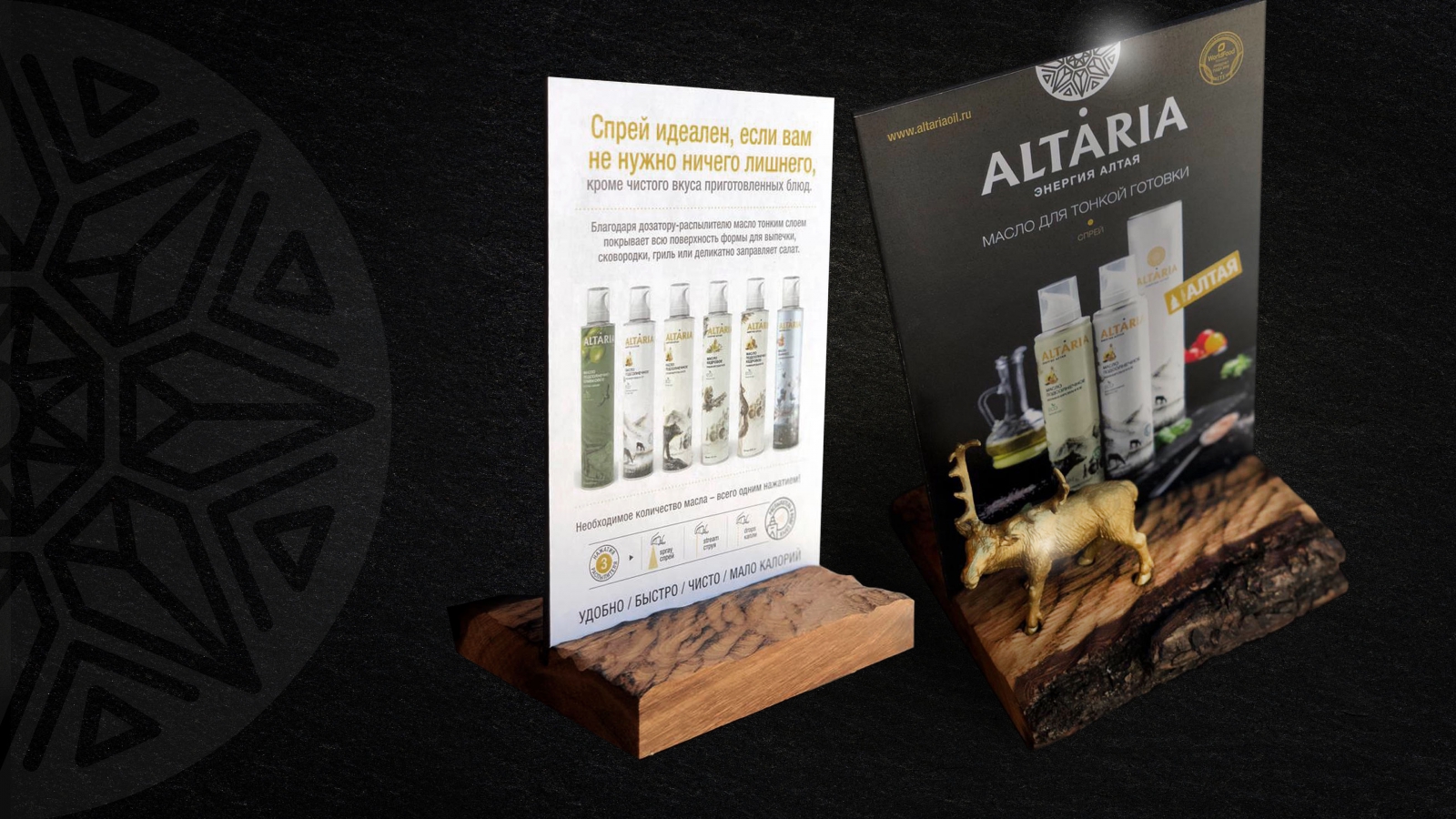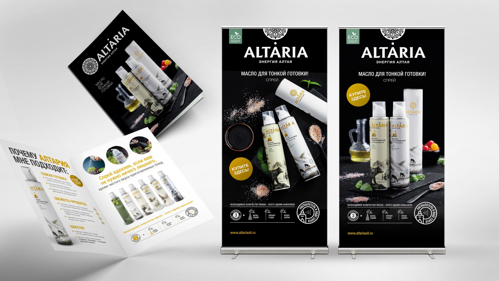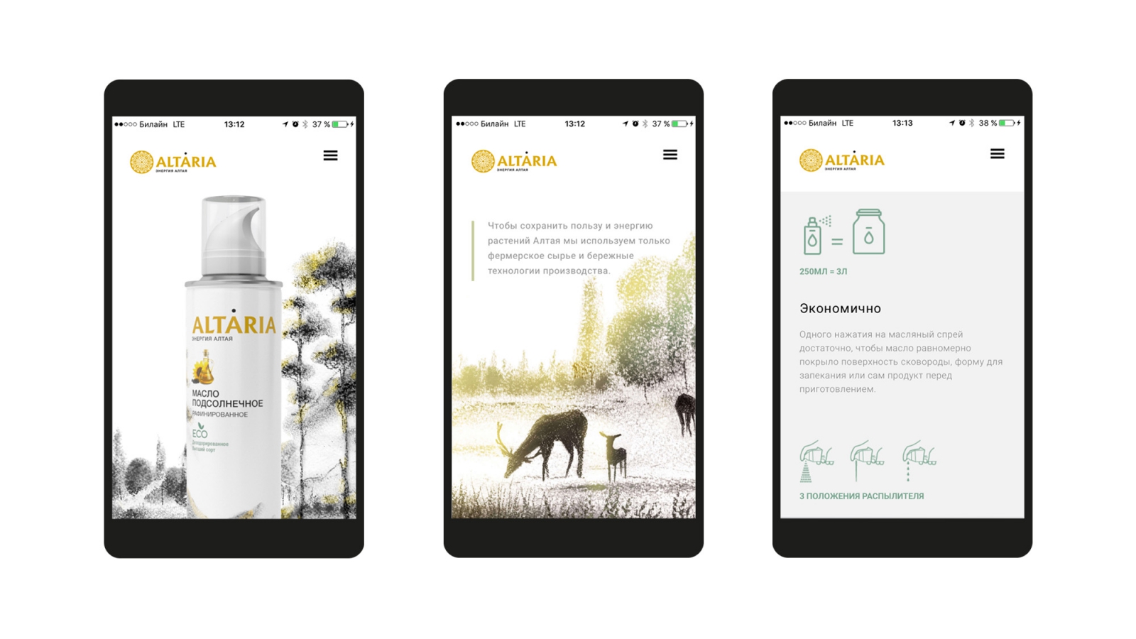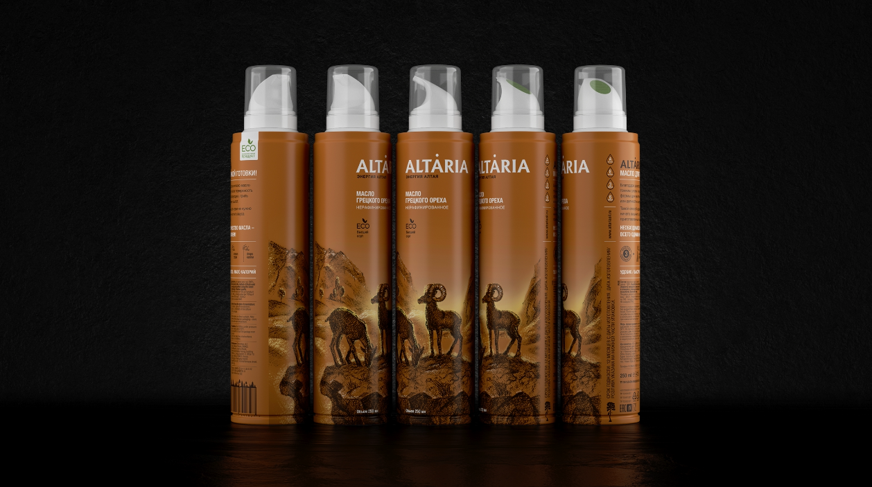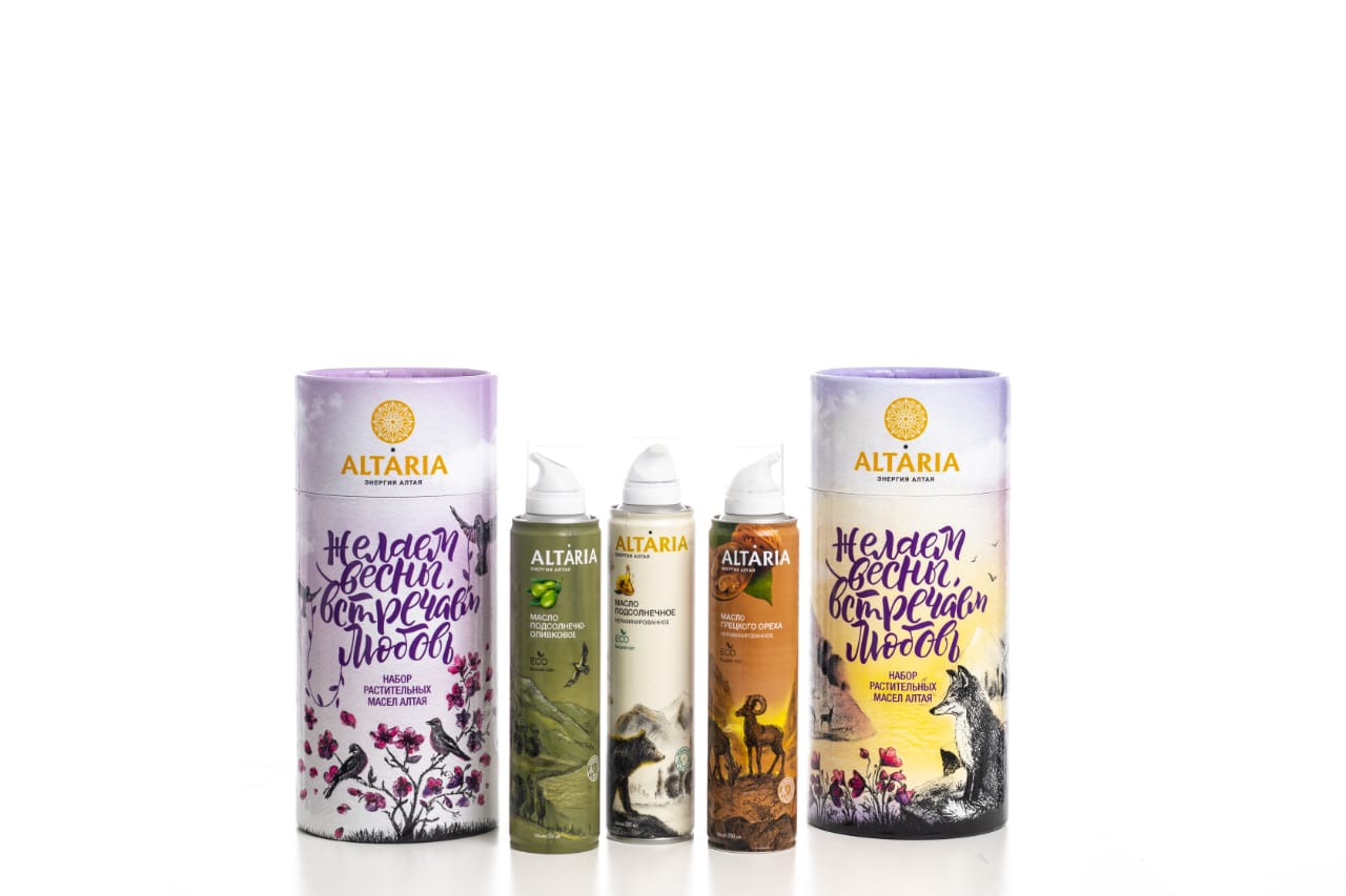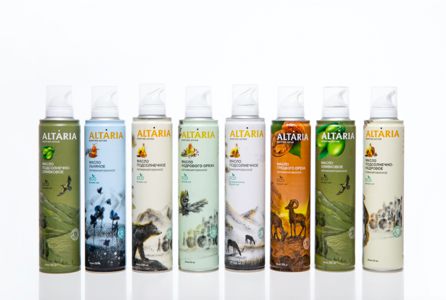 2sharp предложили инновационный формат емкости — спрей, что стало главной фишкой масла Altaria. Для западного рынка это не инновация, так как несколько зарубежных марок используют формат спрея, но для российского — это, признаются креаторы, бомба.