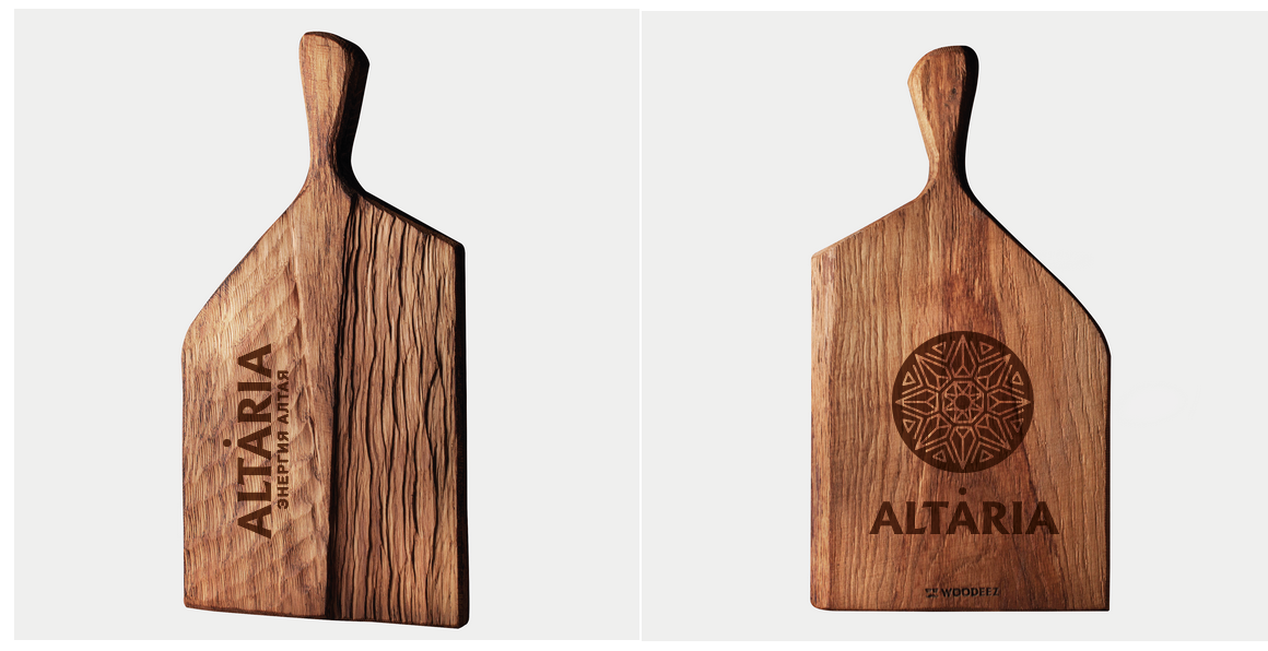 Помимо самого бренда Altaria 2sharp также разработали сувенирную продукцию (фартуки, прихватки, доски, подносы, термостаканы