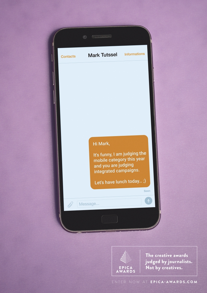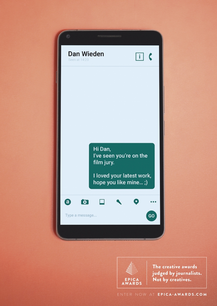Когда ты выступаешь в роли жюри, ты всегда получаешь множество "дружеских" сообщений, в которых люди пытаются узнать о том, как проходит процесс оценки и как поменять её в свою сторону. На основании этого мы сделали инсайт для продвижения Epica, одной из немногих наград, поддерживаемой большинством агентств из-за своей беспристрастности.