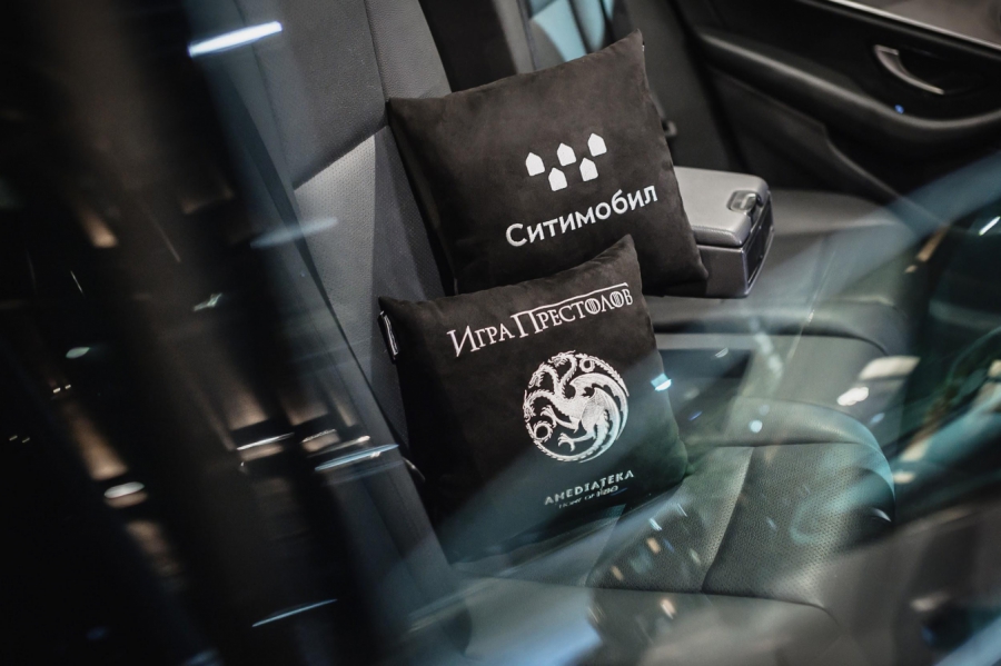 «Ситимобил» и «Амедиатека» нашли решение — автомобили агрегатора оборудовали удобными подушками для сна, брендированными стикерами «Смотри первым, спи потом!» и гербами домов Семи королевств.
