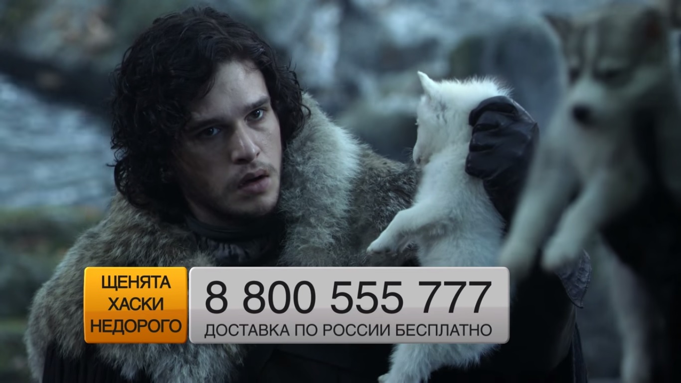 В видео герои «Игры престолов» продают «хаски недорого» и собирают мебель из IKEA, а трусы Уолтера Уайта из сериала «Во все тяжкие» оказываются бесценными.