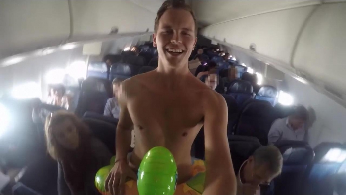 Звезда интернета Джером Жарр чуть не попал в тюрьму из-за своего очередного онлайн-видео. Молодой человек решил разнообразить полёт на самолёте и сделать его более весёлым. Для этого он разделся и расхаживал по салону лайнера со спасательным кругом на животе в виде черепахи. Однако сотрудники American Airlines не оценили подобную креативную идею.