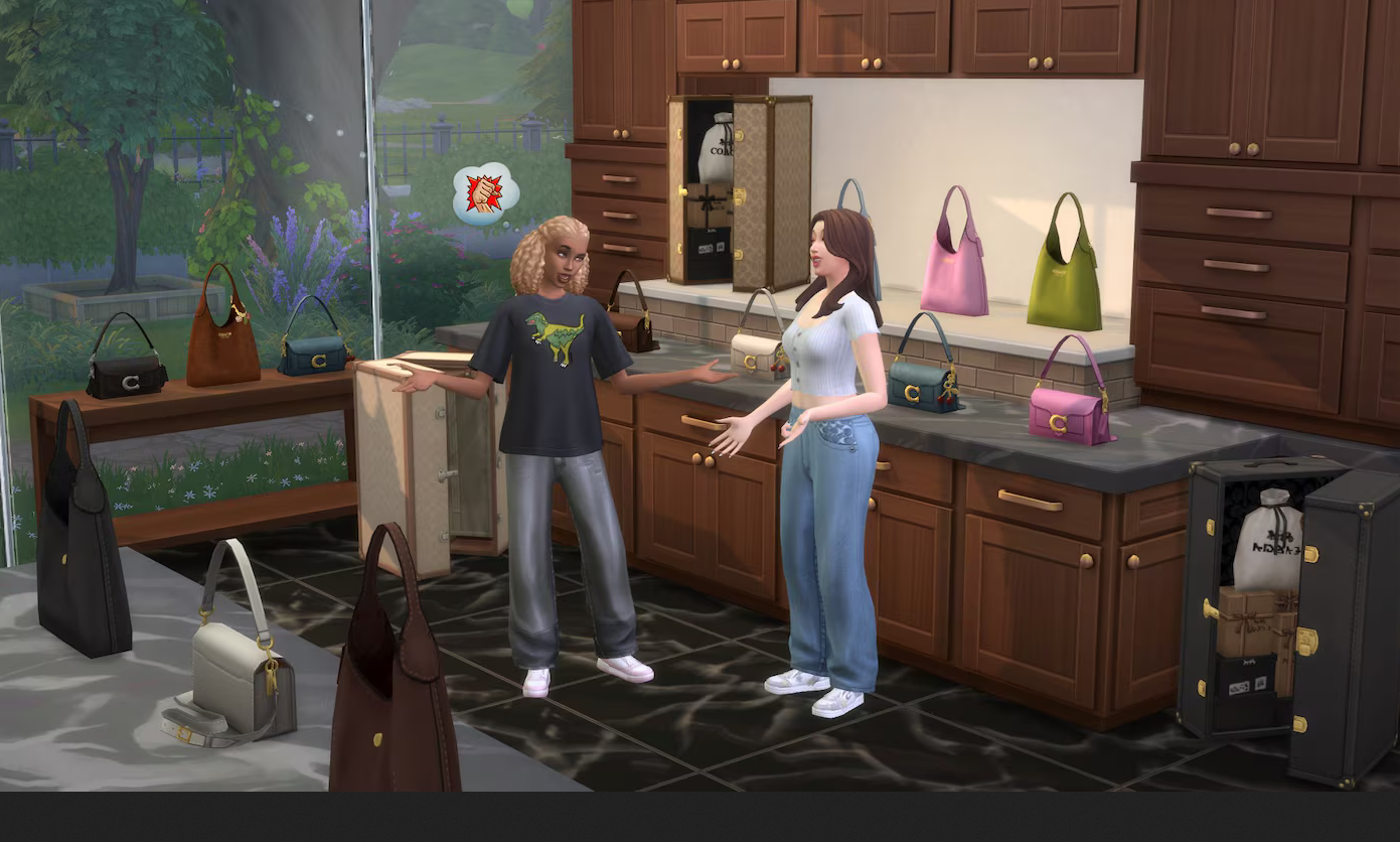 Каждый предмет представлен в десятках цветовых и принтовых вариаций, что позволяет игрокам создавать индивидуальные образы для персонажей. Отдельным элементом коллекции стал интерактивный сундук Coach Trunk, который открывает доступ к заранее стилизованным нарядам и влияет на настроение симов, добавляя функциональность, а не только визуальный эффект.