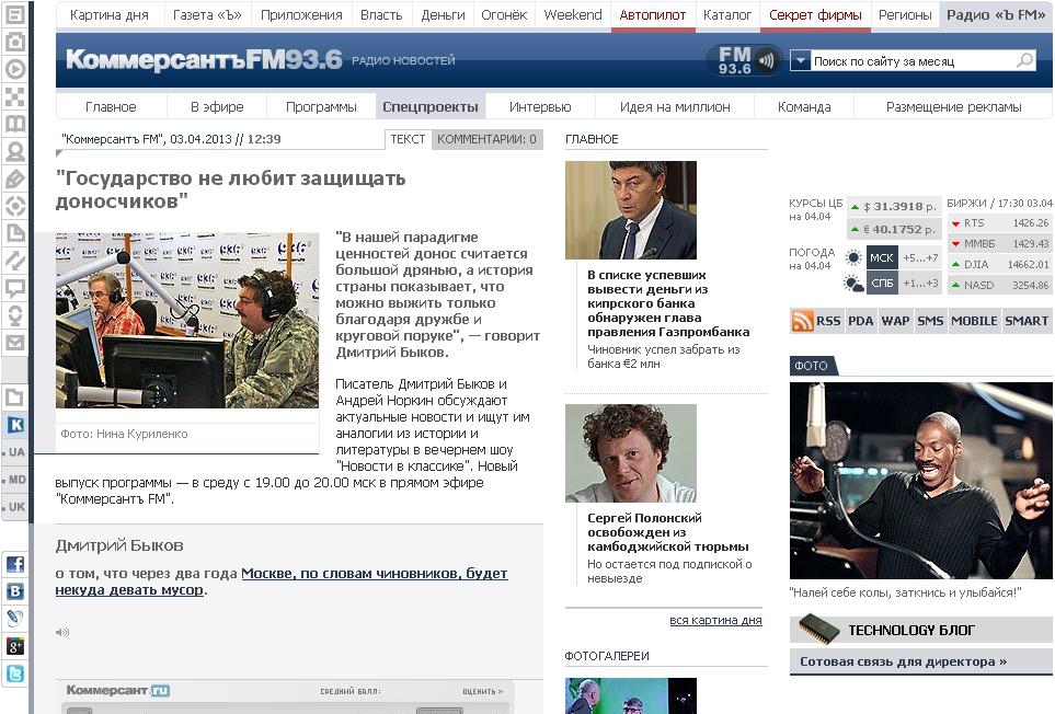 Журналист Андрей Норкин покинет радиостанцию «Коммерсантъ-FM», где вел программу «Новости в классике» совместно с Дмитрием Быковым.
