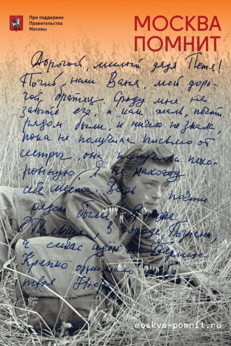 Базовым элементом всей визуальной продукции стало письмо с фронта. Лица солдат и солдаток – фотографические снимки улыбающихся людей, будто сумевших на время забыть, что их окружает война, размещены рядом с письмом, а иногда строчки бегут прямо по фотографии.