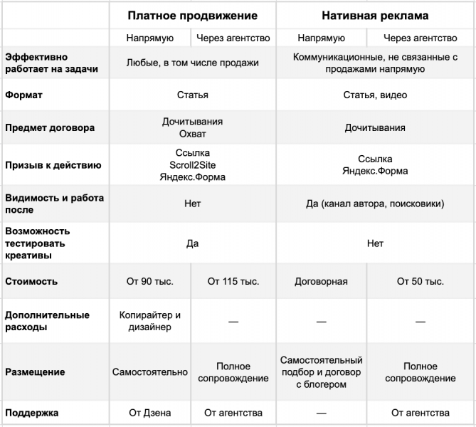 В нативной рекламе нельзя управлять трафиком так четко. Статья у любого, даже самого хорошего блогера «Дзена», может не «выстрелить». На этот случай надо прописывать количество дочитываний в договоре с блогером: если что-то пойдет не так, он напишет ещё одну статью или использует свои бонусы для дополнительного продвижения.