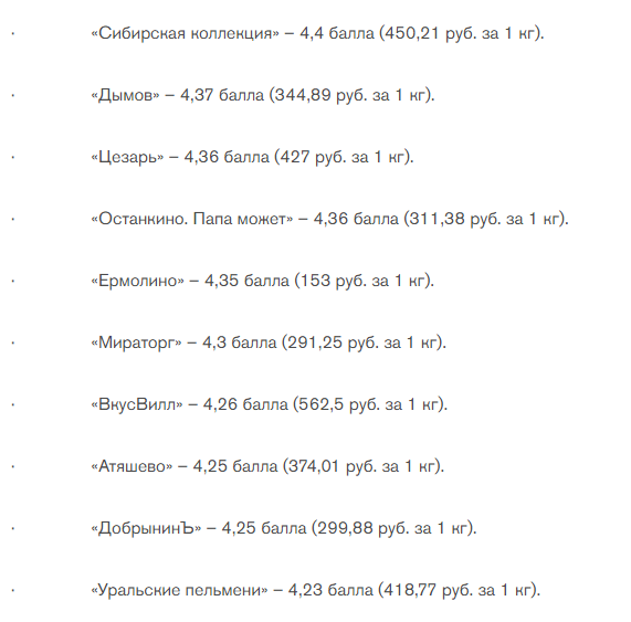 По результатам исследования Роскачество составило топ-10 пельменей от производителей: