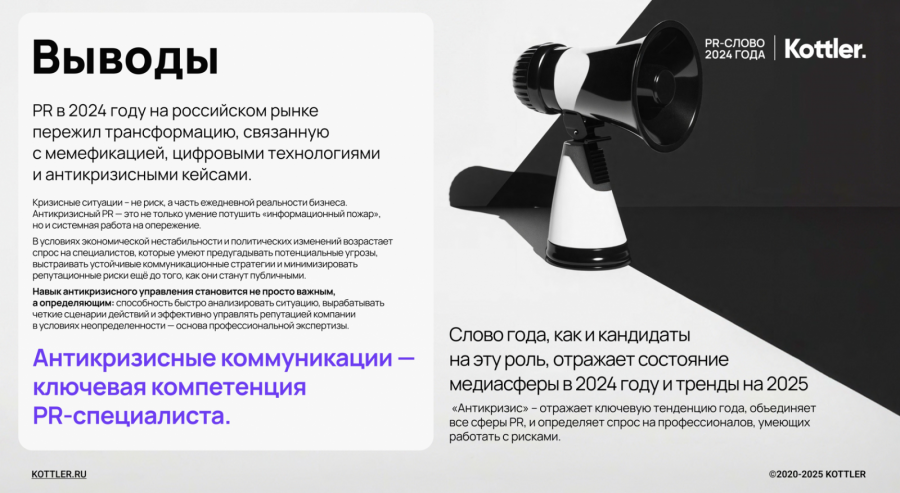 Полная презентация результатов исследования «PR-слово 2024 года» от Kottler по ссылке.