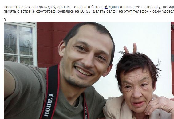 Впрочем, не все пользователи оценили модное селфи. «Мне кажется совсем не этичным издевательски относится к женщине, которая к тому же страдает от алкоголизма», - отметил фотограф Митя Алешковский в комментариях. «Это ж любя и по взаимному согласию», - заявил Марков.