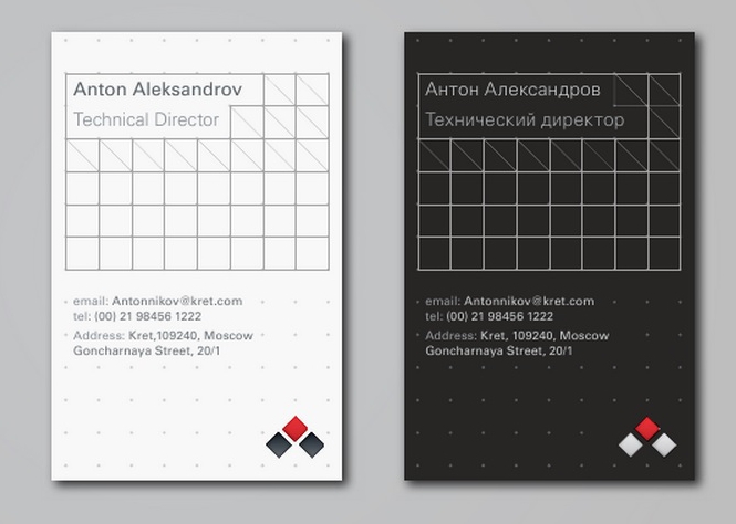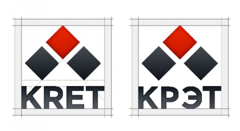 Создание истории нового бренда КРЭТ и разработка для него дизайнерского решения началась в марте 2013 году и велась больше года. В ходе ребрендинга состоялся ренейминг: теперь название концерна состоит из лаконичной аббревиатуры КРЭТ (KRET) на двух языках. В основе нового логотипа концерна – те же буквы КРЭТ, которые в зависимости от формы логотипа дополняются сверху или слева тремя расположенными на разном уровне ромбами.