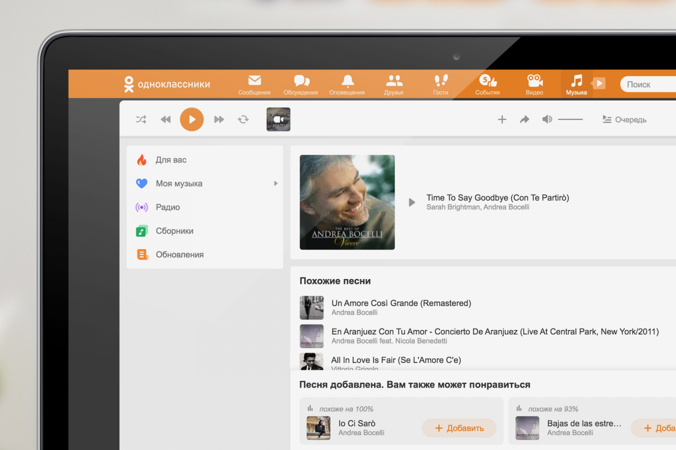 В соцсети «Одноклассники» Sostav сегодня рассказали о запуске улучшенной системы музыкальных рекомендаций. Новый алгоритм на основе нейросетей и технологий машинного обучения анализирует звучание композиций, прослушанных пользователем, и рекомендует похожие, объяснили в компании. Соцсеть также предложит слушателям плейлисты исключительно из похожих треков, добавили в компании.