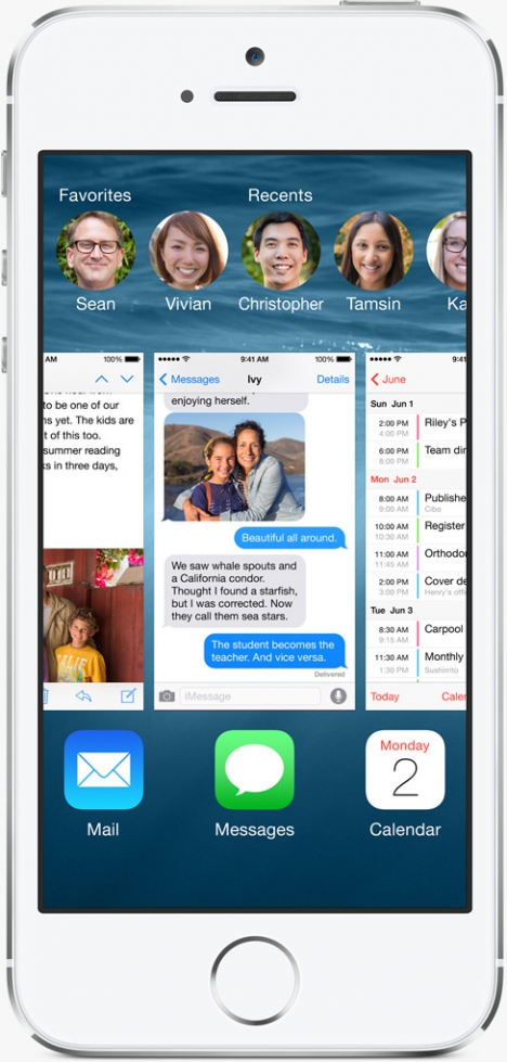 Кардинальных изменений в дизайне новой операционной системы для смартфонов нет, переработаны ярлыки и внешний вид самих приложений. Появились несколько новых функций, такие как быстрый набор текста QuickType, быстрая отправка голосовых сообщений Tap to Talk, фитнес-платформа HealthKit и «Семейный доступ», пользоваться которой одновременно могут до 6 человек, установив при этом функцию родительского контроля.