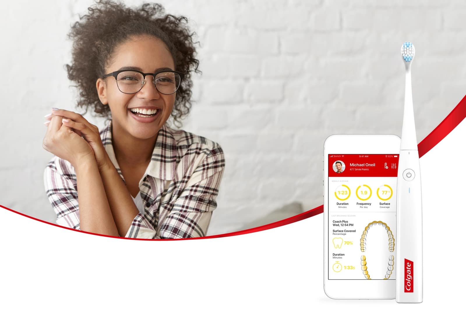 Colgate Connect E1 оснащена технологией искусственного интеллекта от Kolibree. Приложение Colgate Connect для iPhone и iPad позволяет эффективно следить за состоянием зубов. Тщательной очистке способствует звуковая вибрация, а 3D-модель показывает пройденные и «забытые» участки. Сенсоры в режиме реального времени контролируют 16 зон в ротовой полости. На основе собранных данных и с учетом его привычек пользователю выдаются рекомендации. Подсказки помогут усовершенствовать технику чистки и больше узнать об уходе за зубами.