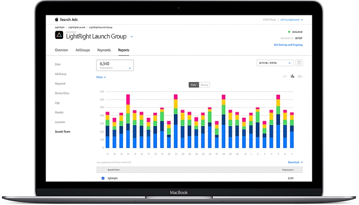 Поисковая реклама будет доступна даже разработчиком с ограниченным бюджетом — минимальной планки здесь не существует. Оплата берется за каждый клик, в любой момент кампанию можно будет свернуть. При этом можно выбрать как упрощенный вариант (клиент указывает, какое приложение надо прорекламировать, остальное делает Apple), так и расширенный — с таргетингом, API, отчетами и другими возможностями.
